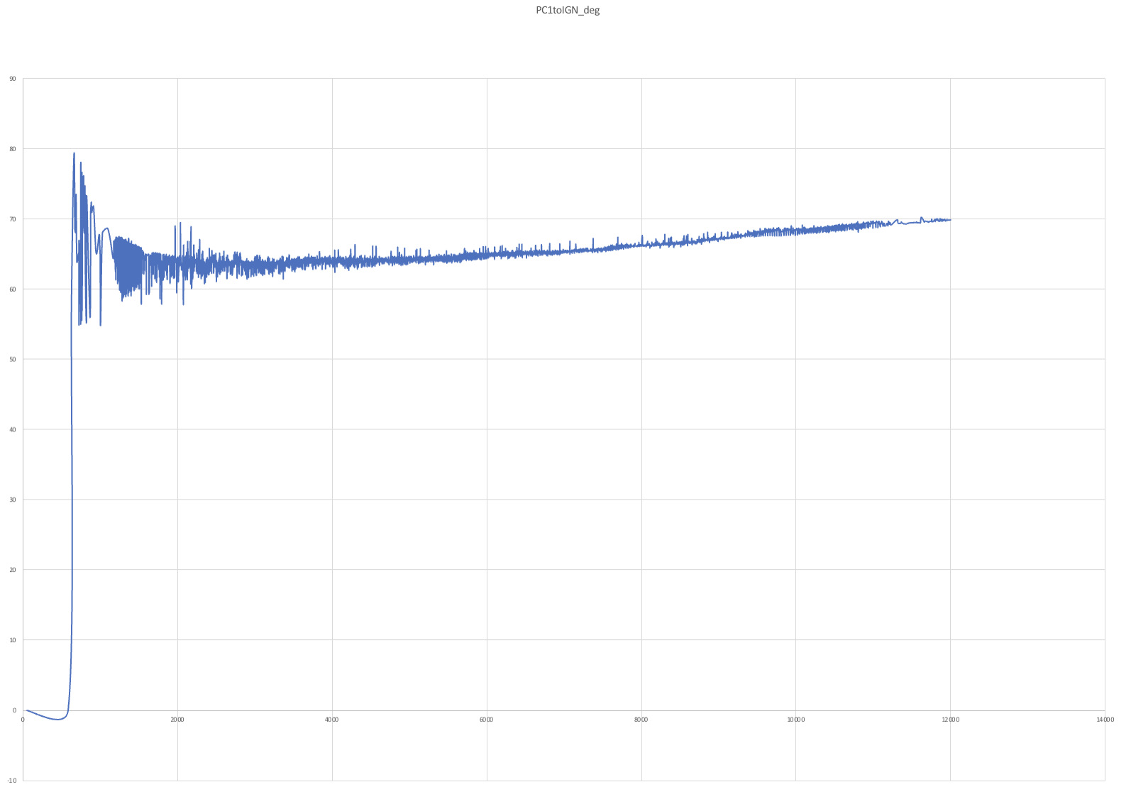 例によって軸が潰れて見えないが、横軸がrpm、縦軸がdegである。