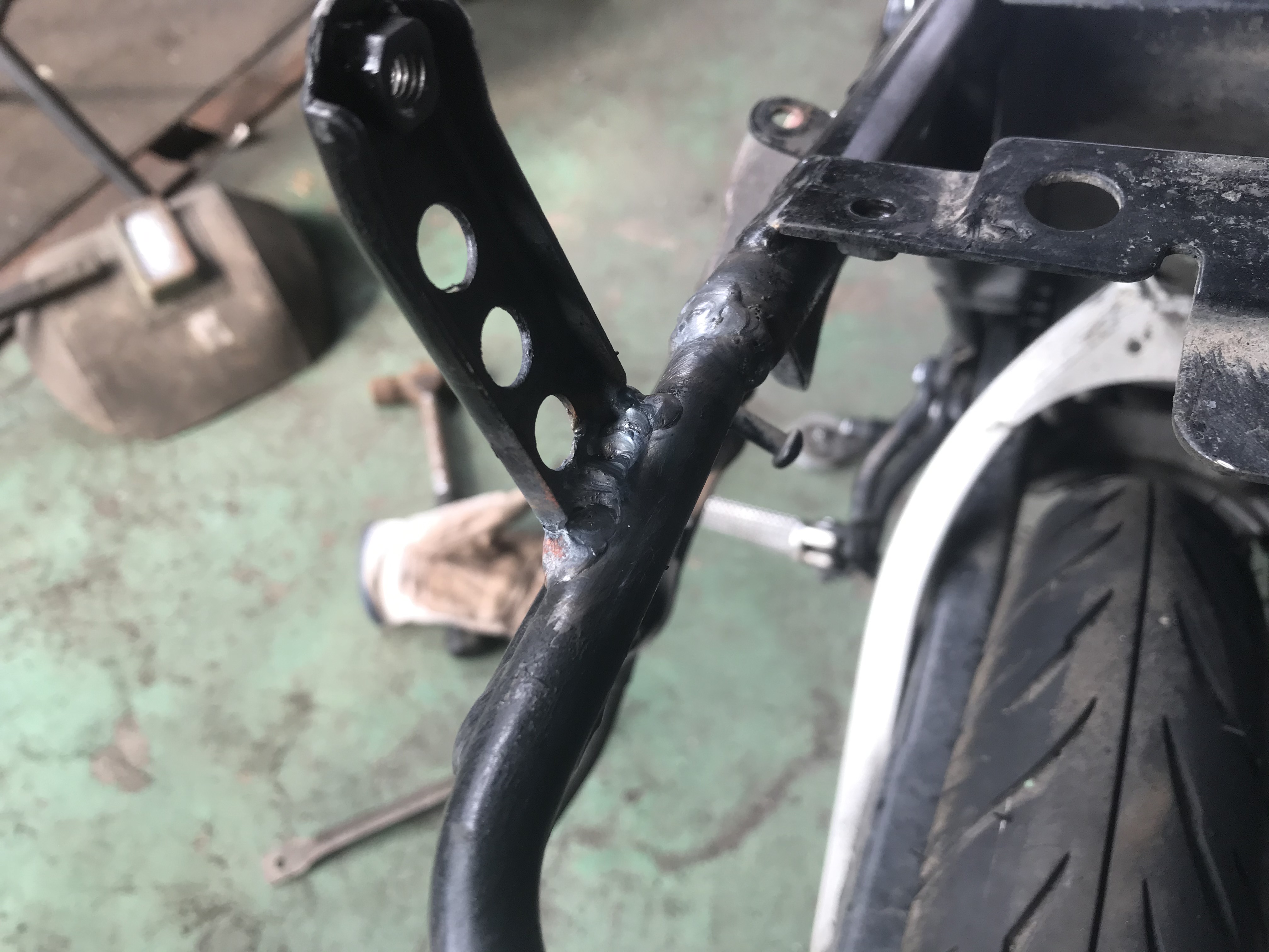 このカウル固定ステーもクラックが入っていたので、TIGでもりまくり
