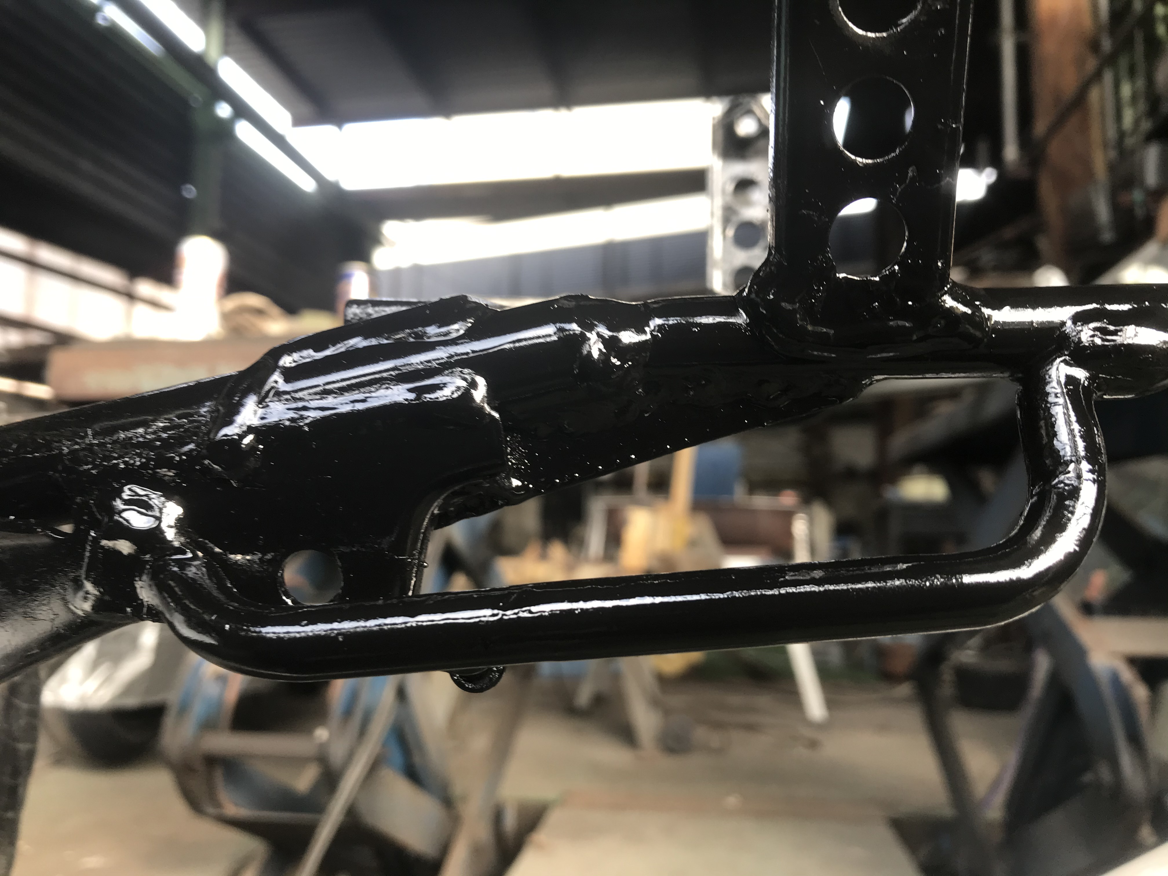 白井内燃機工業でお世話になることに。200V半自動でやる予定が、なんかしらんがワイヤーが良くなくて無限にブローホールが。結局しゃちょーにTIGで溶接+補強を入れてもらった