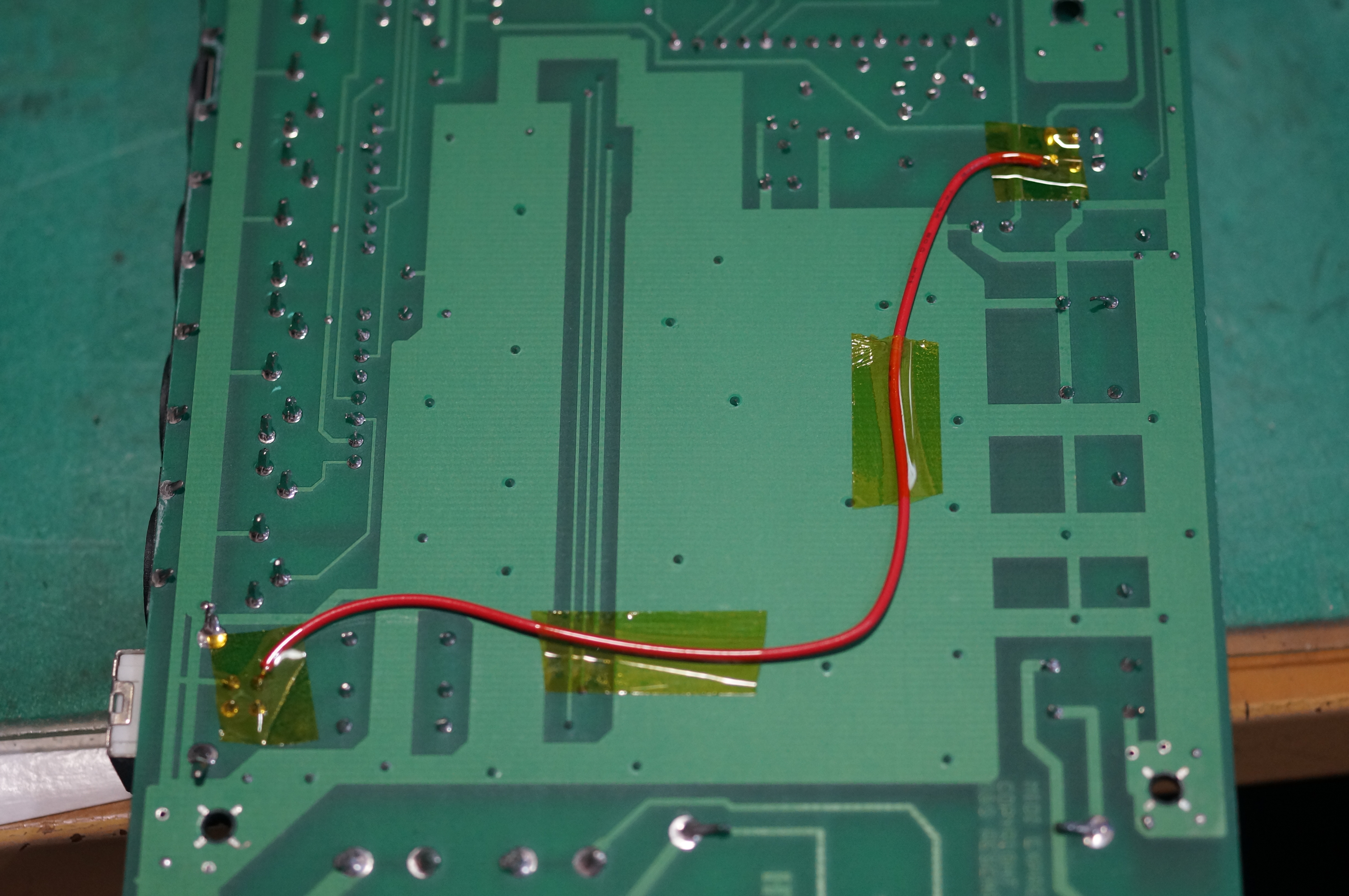 左下のUSB電源から右上ロジックの電源部に適当に引き回します