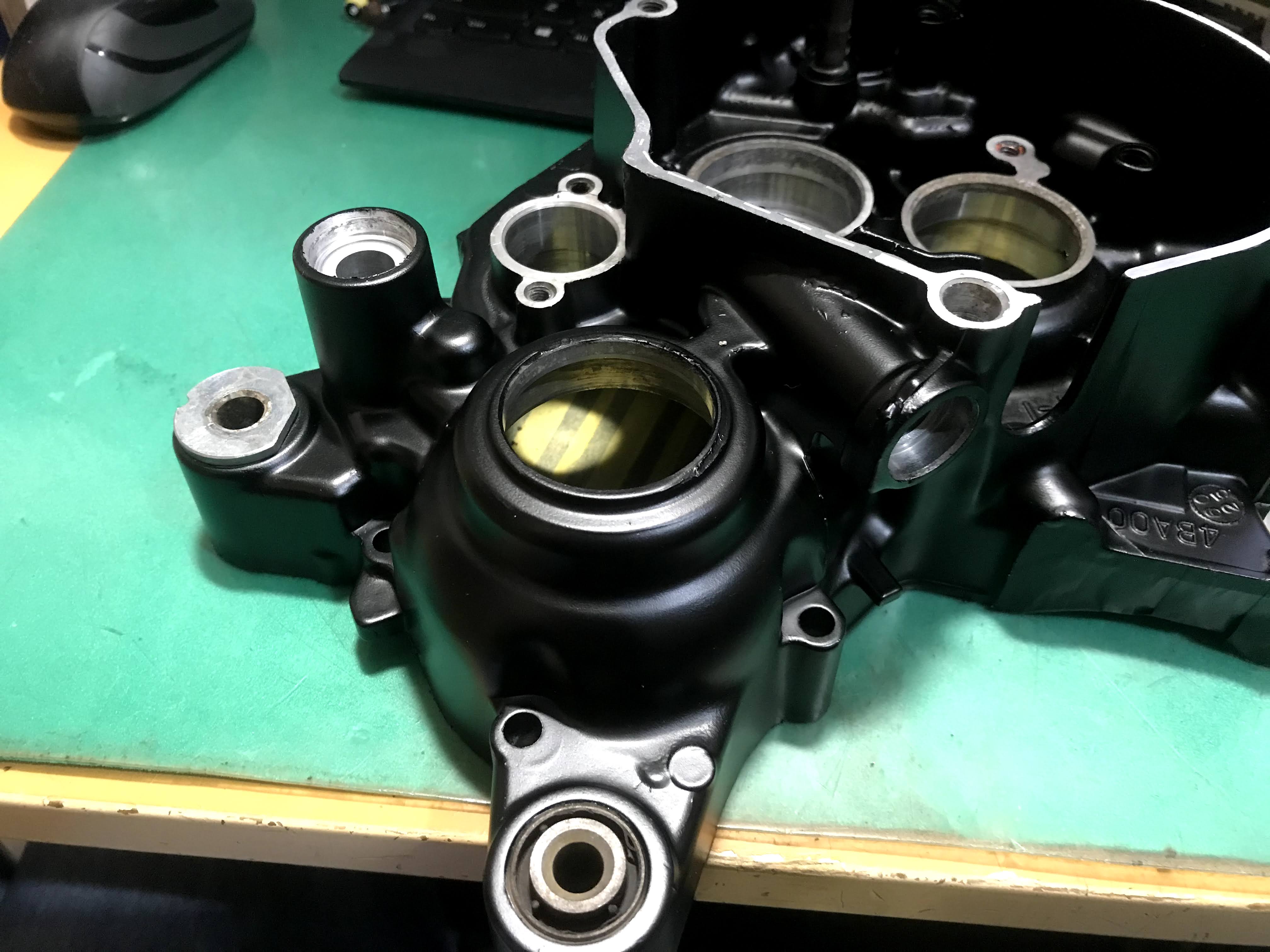 この段階でほぼ故障内容がビッグエンドベアリングの粉砕で確定していましたが、前回OHした3000km前の段階ではフレが一切なく、ピストンリングでも粉砕したんだと信じてましたが