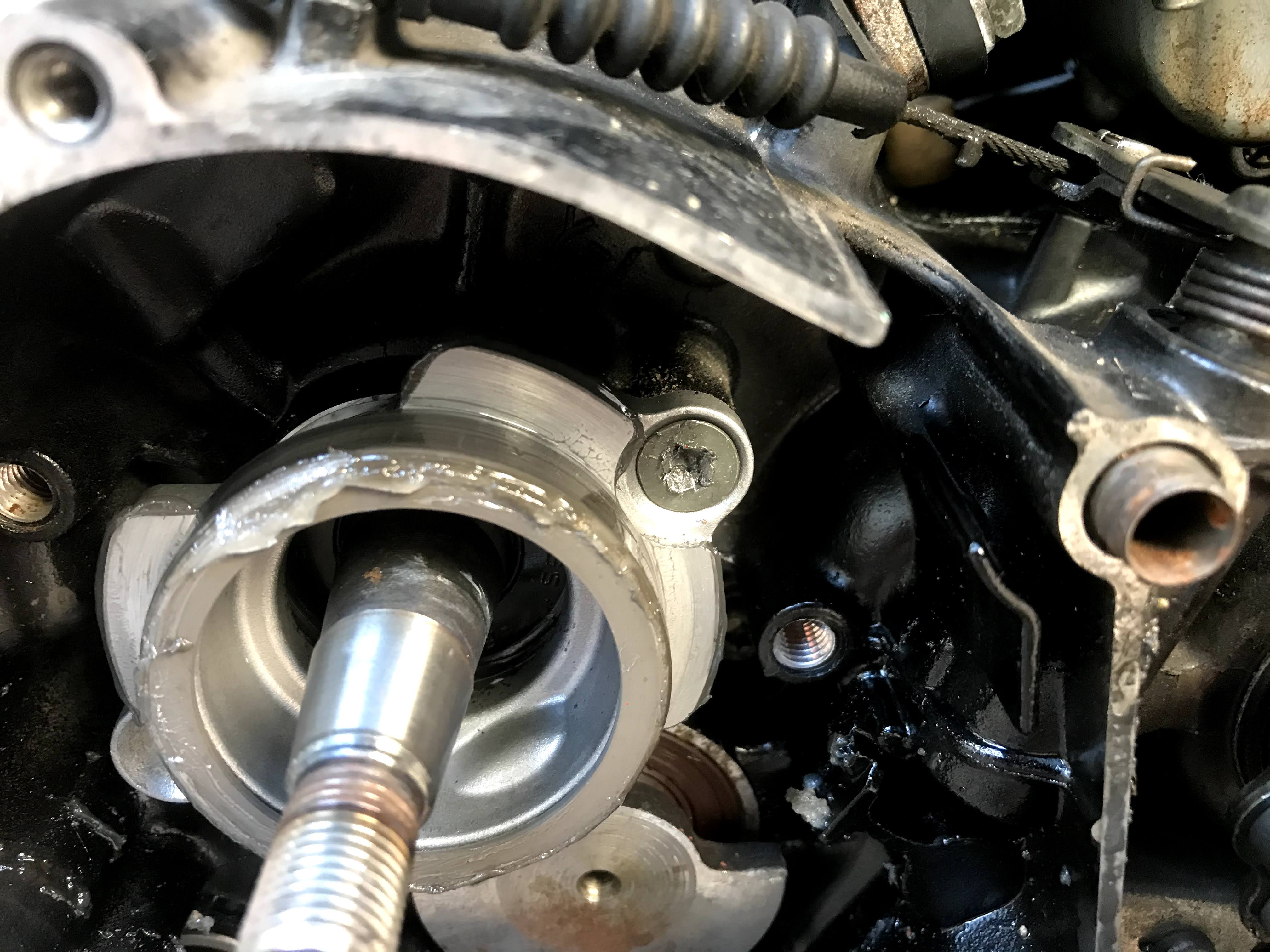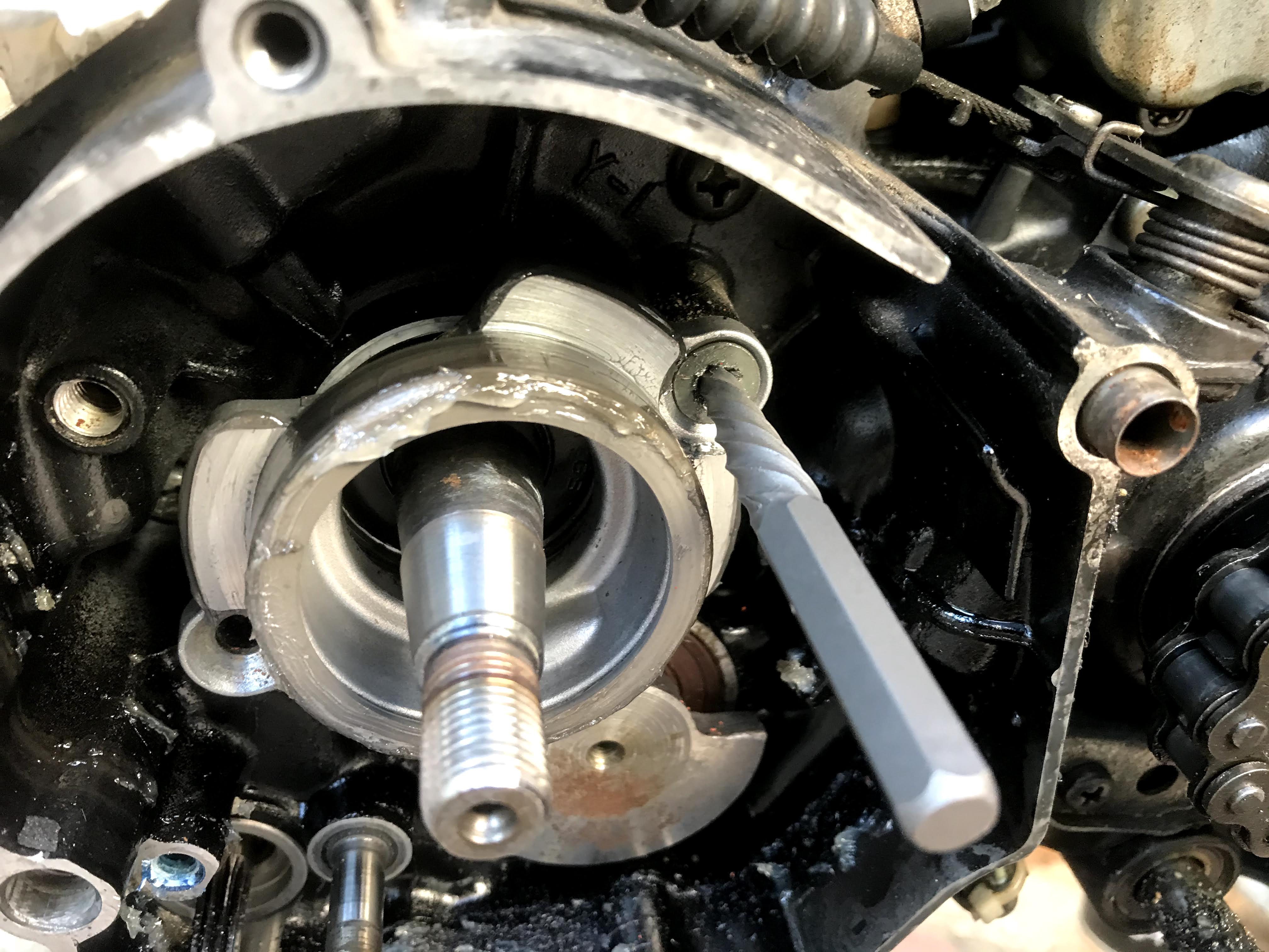 スタータークラッチの部品が、乗ってるエンジンのほうが状態良かったので部品取りしたんですが、ここのネジはマジでショックドライバーがあっても舐めます。緩んでも硬さが変わりません。超強力ネジロック入ってます。