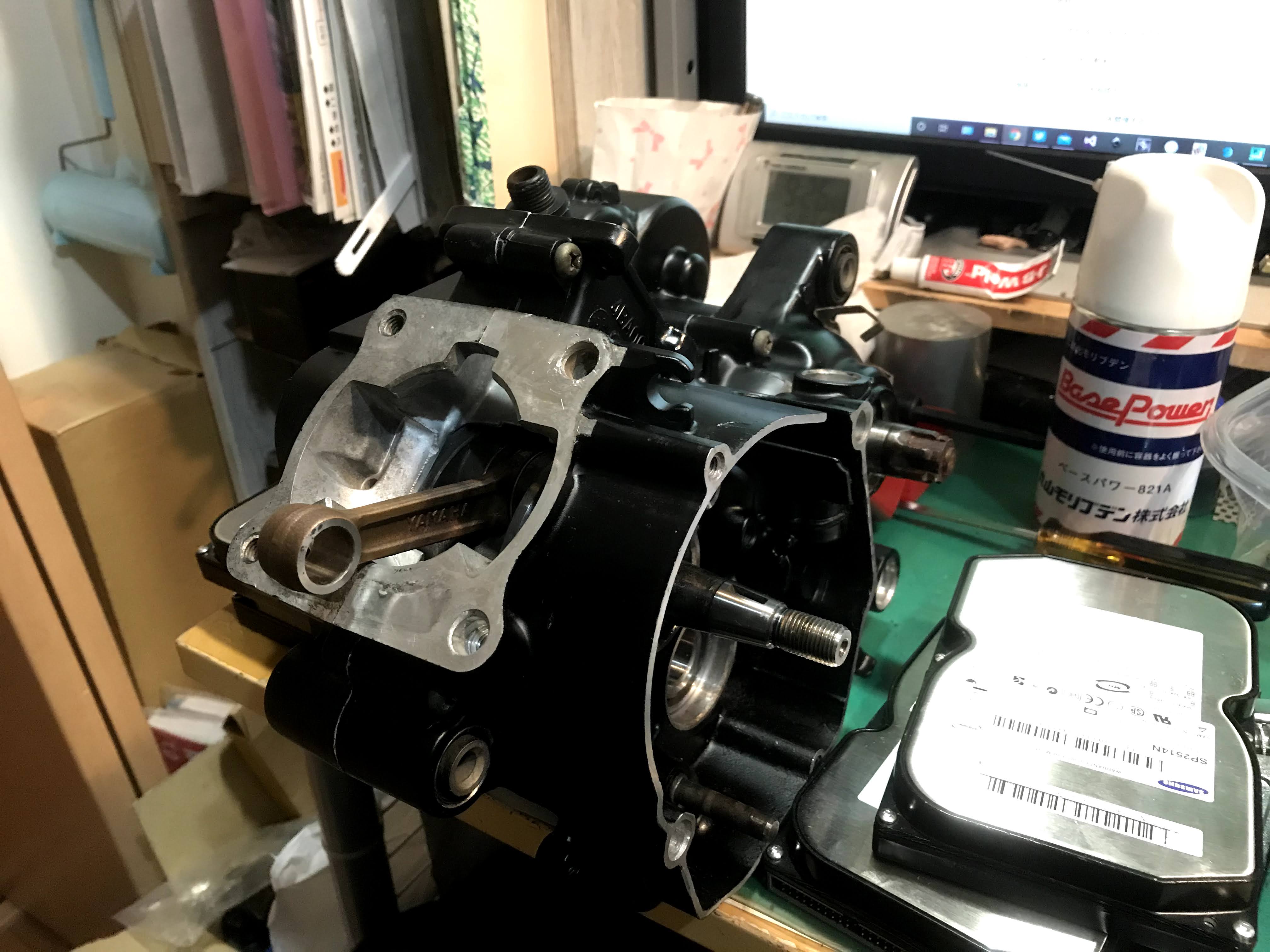 話をOHの話に戻しますと、TZRのエンジンはまるごと持っててすでに分解清掃済みでバラバラのまま放置していました。なので、ベアリングとオイルシール、その他足りない消耗品を買えばすぐにでも組める状態でしたので、部品を手配して組み上げました。