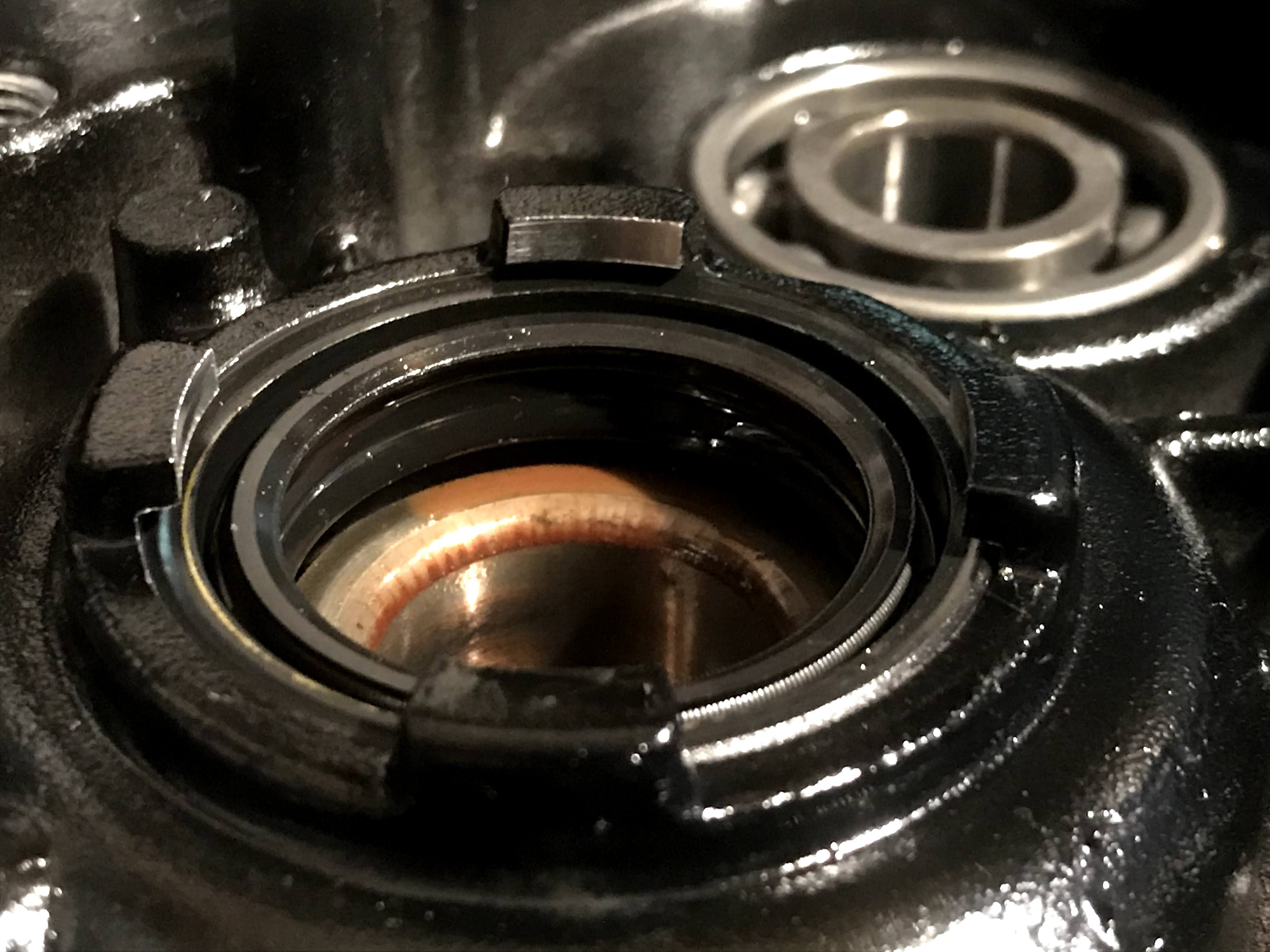 でもここ油没箇所なんですよね。グリスも塗ってあるし、シールもギヤオイルに浸かるんだからいらんやろ。と突っ込みたくなりますが、たぶんクラッチ外したときとかにゴミが噛むのを防ぐ考えがあるのかも?