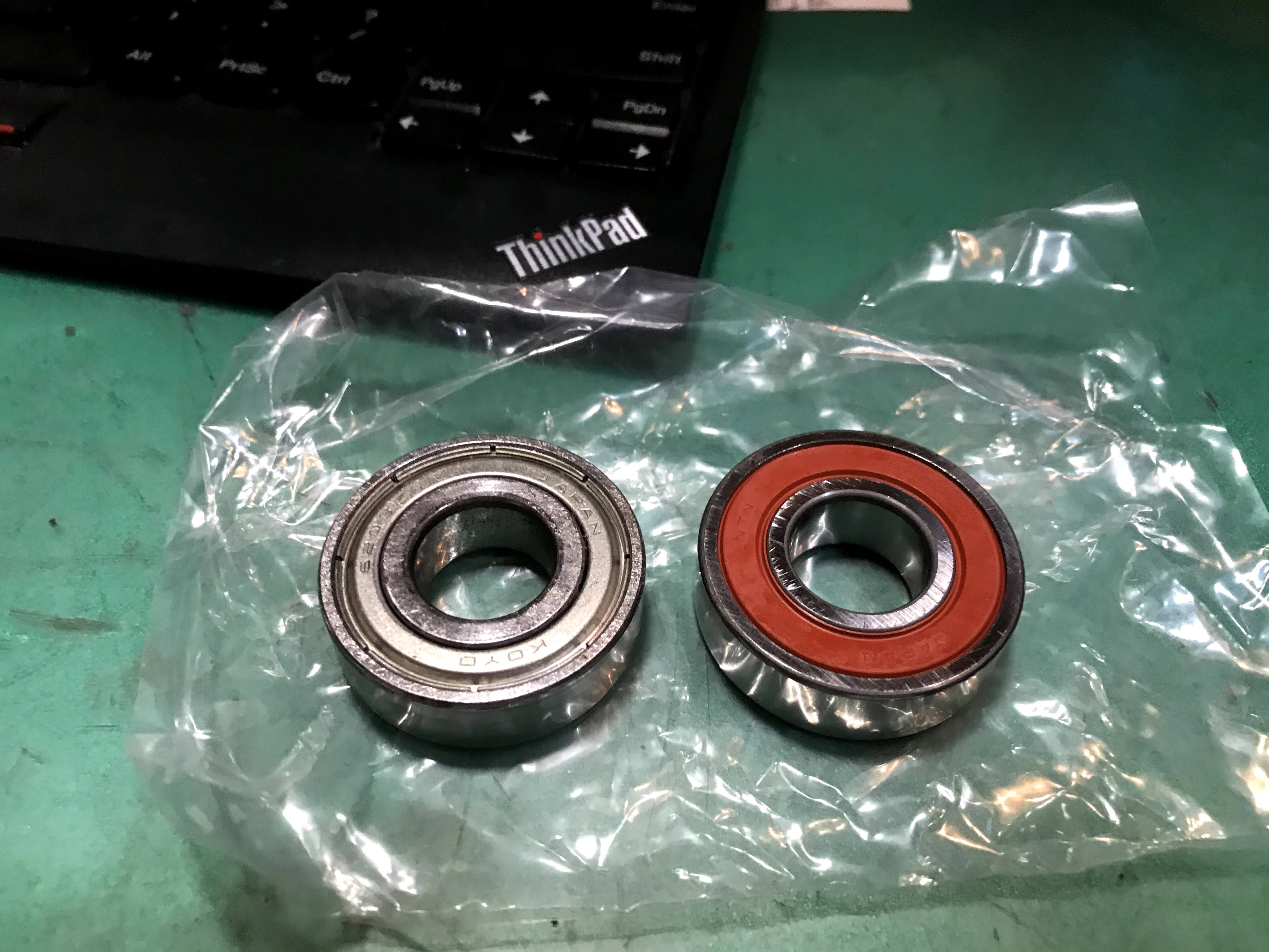 ミッションのベアリング。旧型は金属の’シールが入ってるが、今はゴムのシールが入っています。