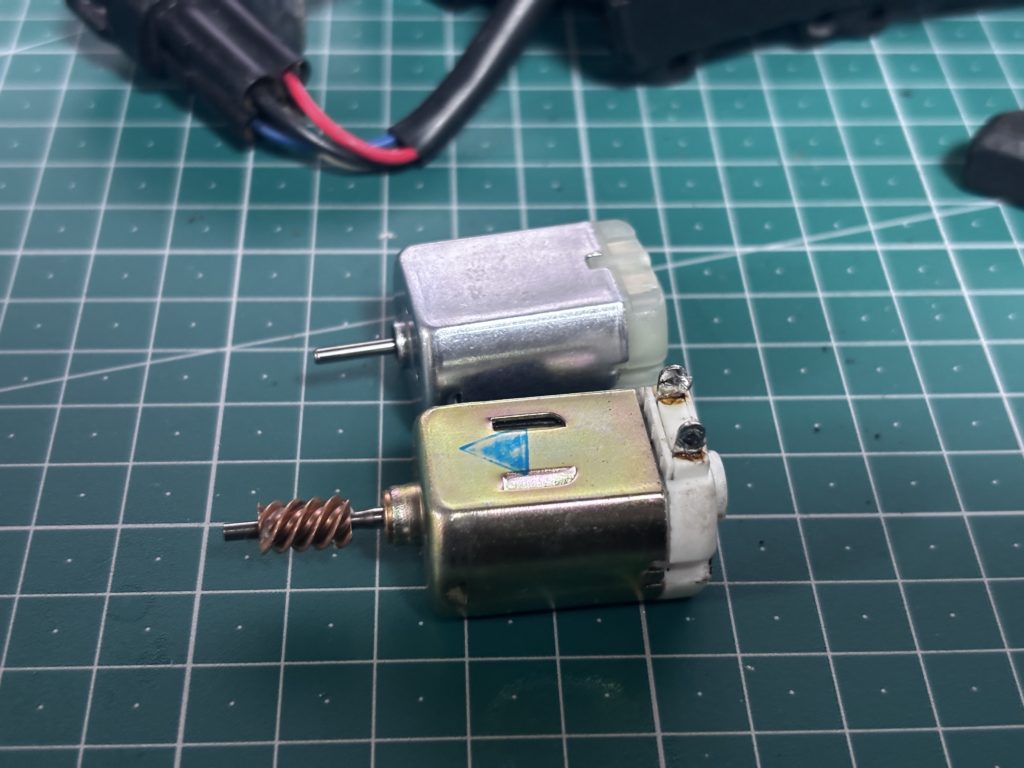 なお、モーターASSYで交換も考えましたが…スプライン入り且つギア側軸長さ18mmという条件を満たすFC230系モーターが存在しなさそう…あったら教えてほしい。どうやら100系ハイエースとかも同じようなユニットらしいが…