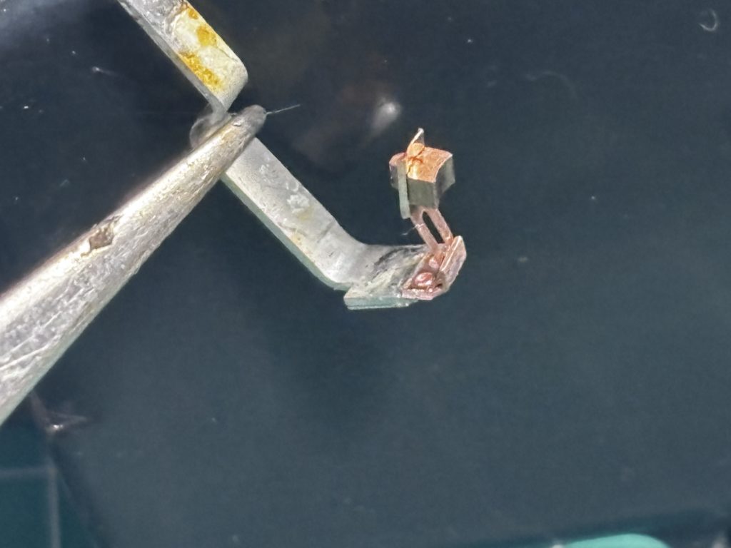 ということで、ブラシ部分だけ適当に切り取ってはんだ付けで移植。0603metricくっつけることを思えば超☆簡単。間欠動作なので対して熱もかからんと思うので良いでしょう。