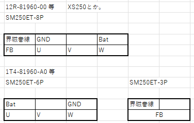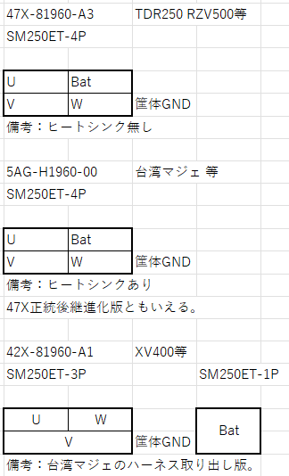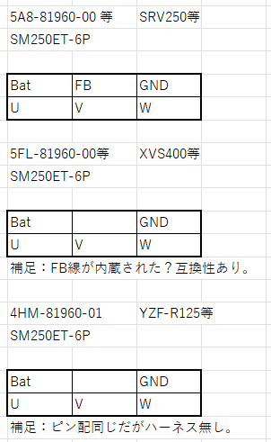 ヤマハ車レギュレート・レクチファイアの分類&ピン配